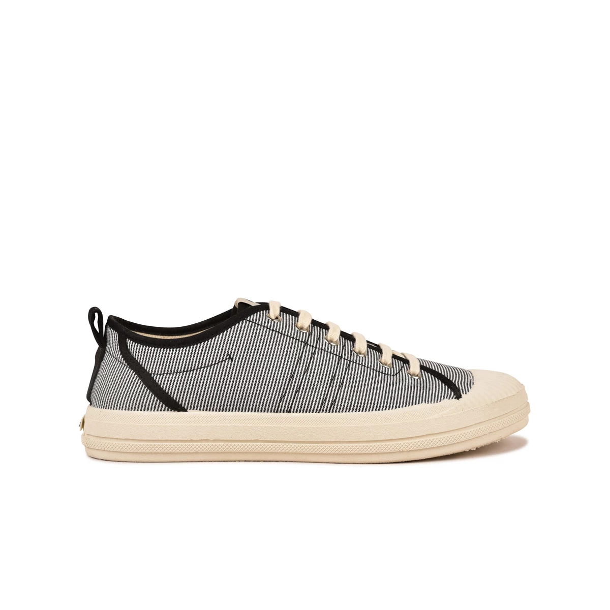 Craquez pour la basket homme ETCHE, la chaussure en toile légère et très confortable. Sa tige est composée d’un tissu en toile rayé blanc et noir et montée sur une semelle injectée en caoutchouc naturel. Ce procédé permet à la semelle de conférer plus de confort et de légèreté dans votre marche. Sa semelle intérieure est anatomique et s’enlève très facilement afin d’y placer vos propres semelles si vous le souhaitez.